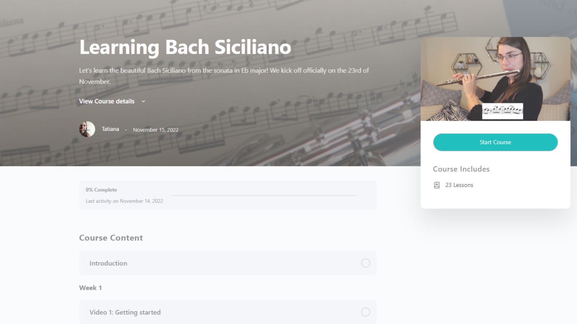 The Learning Bach Siciliano course with Tatiana has been the catalyst I needed to get unstuck from that awful non productive pattern. The course is amazing! Step by step and note by note!